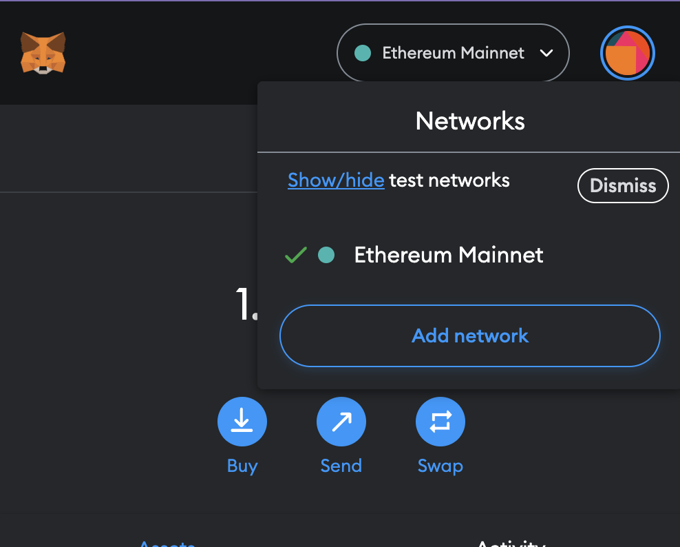 Add the network of your choosing to MetaMask by clicking the networks drop-down and selecting "Add network".